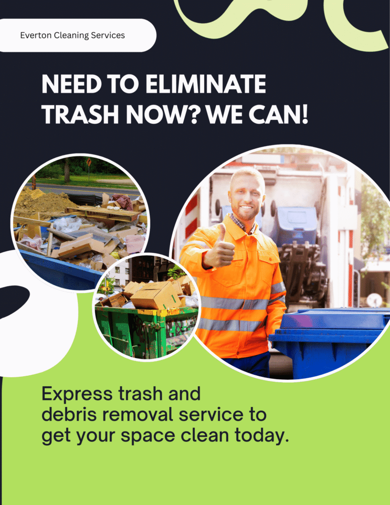Since 1999, Everton Cleaning Services has been your go-to for efficient apartment trash removal. We specialize in keeping your space clean and clutter-free. Our dedicated team ensures that all waste is handled responsibly, letting you enjoy a tidy home without the hassle.